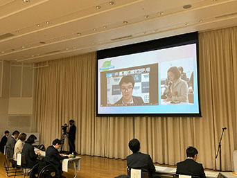 令和7年度第8回大会は全国34校から72作品の応募があり、7つある各ブロックの予選を最優秀で勝ち上がってきた7名のプレゼンテーションを行う各校と審査委員のいる会場とを遠隔システムでつないで生中継し、質疑応答や表彰式もリアルタイム行われました。